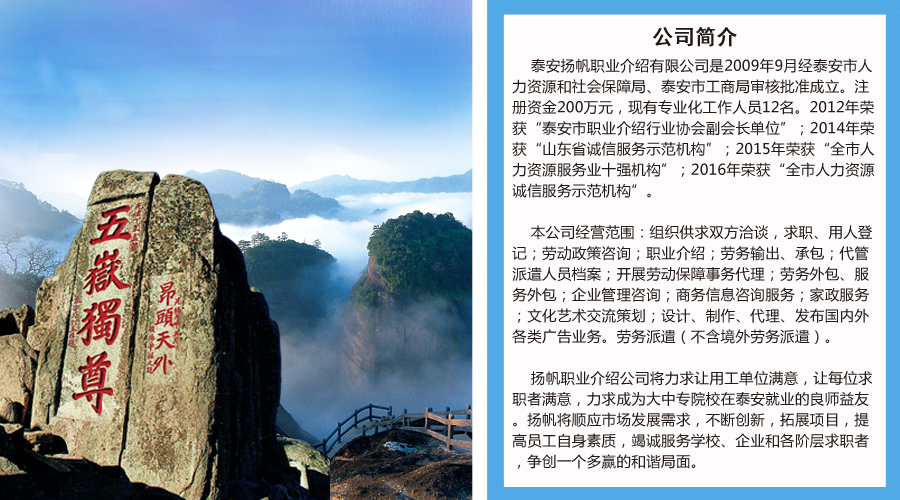• 【招聘公告】泰安揚帆職業(yè)介紹有限公司某國有企業(yè)招聘簡章 [2025-10-10]